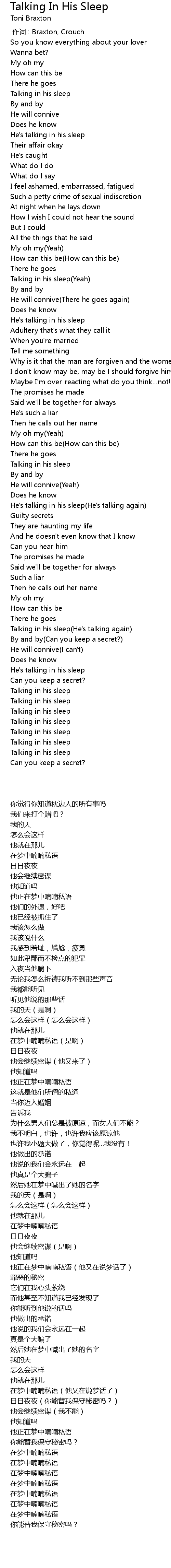 | [01:40.88] | Talking in his sleep(Yeah) |