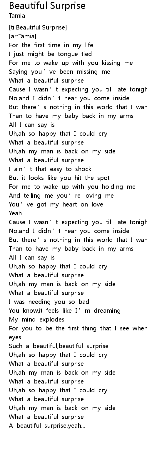 | [01:11.404] | What a beautiful surprise |