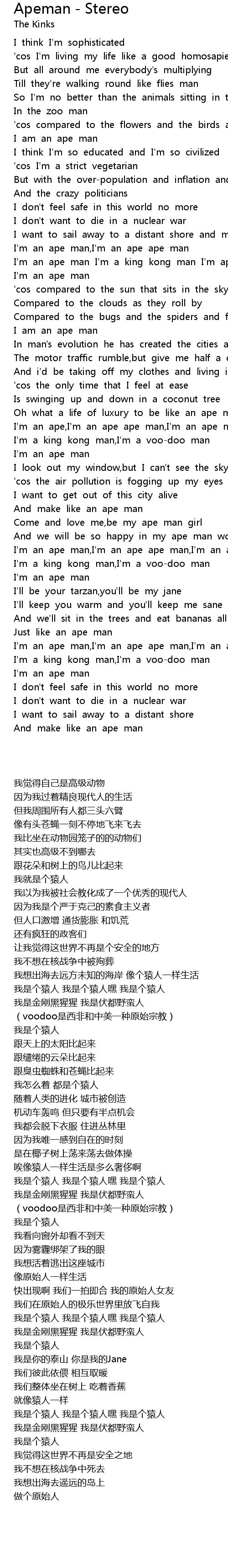 I'm an ape man,I'm an ape ape man,I'm an ape man |