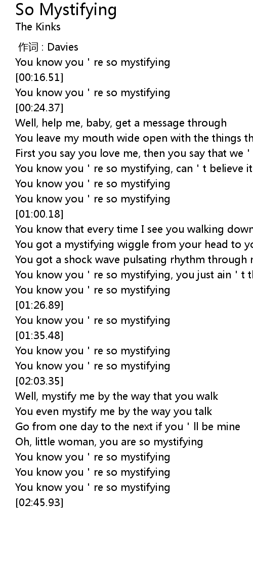 | [00:40.37] | You know you re so mystifying, can t believe it s true |