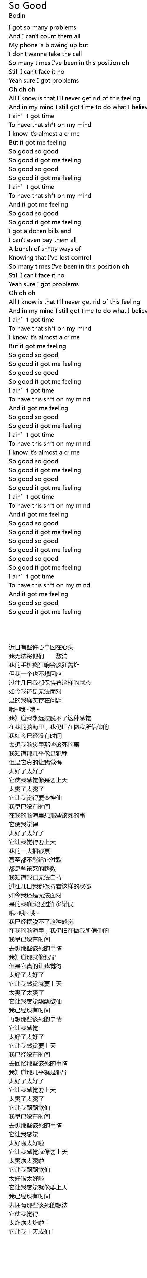 | [00:46.90] | So good it got me feeling |
