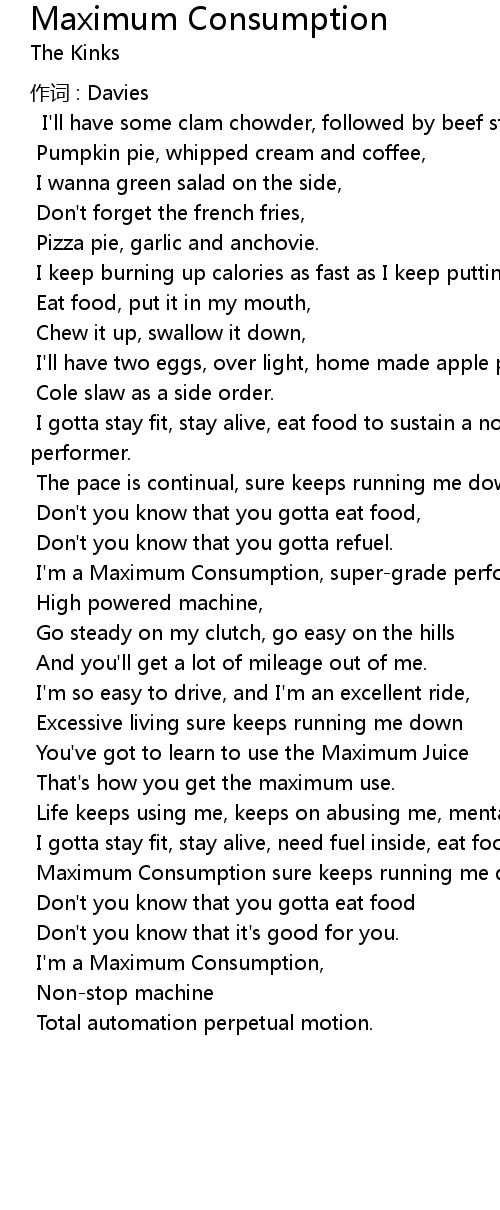 | I gotta stay fit, stay alive, need fuel inside, eat food to survive | |