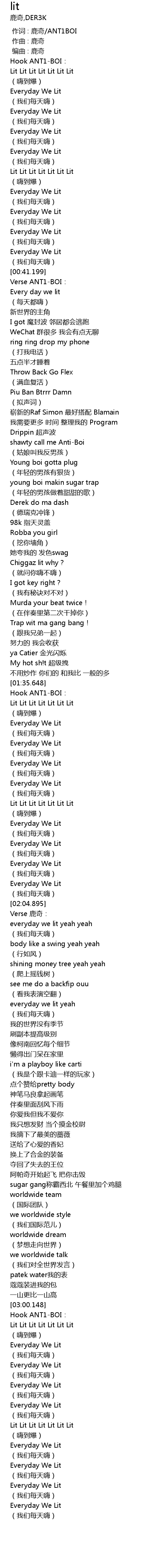 | [00:00.000] | 作词 : 鹿奇/ANT1BOI |