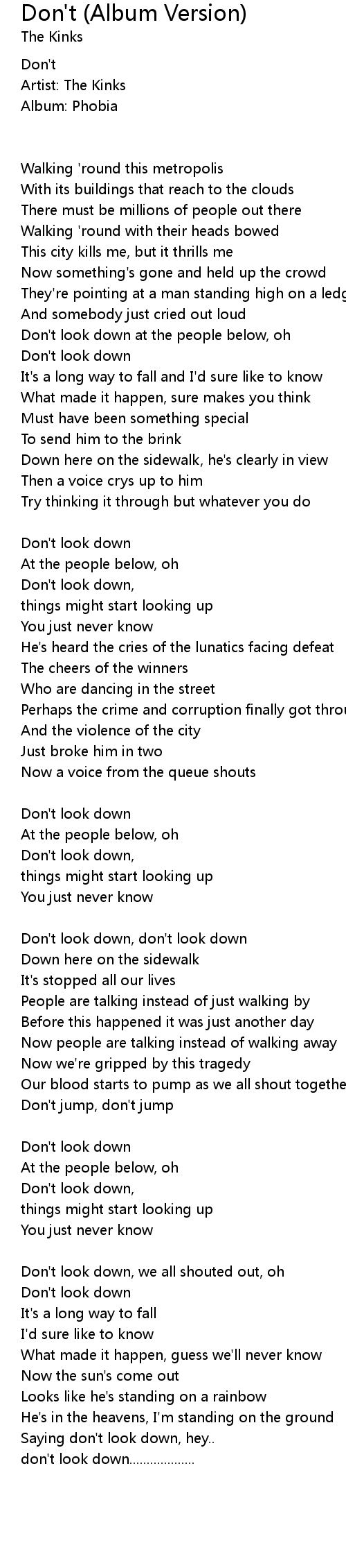 | Don't look down, | |