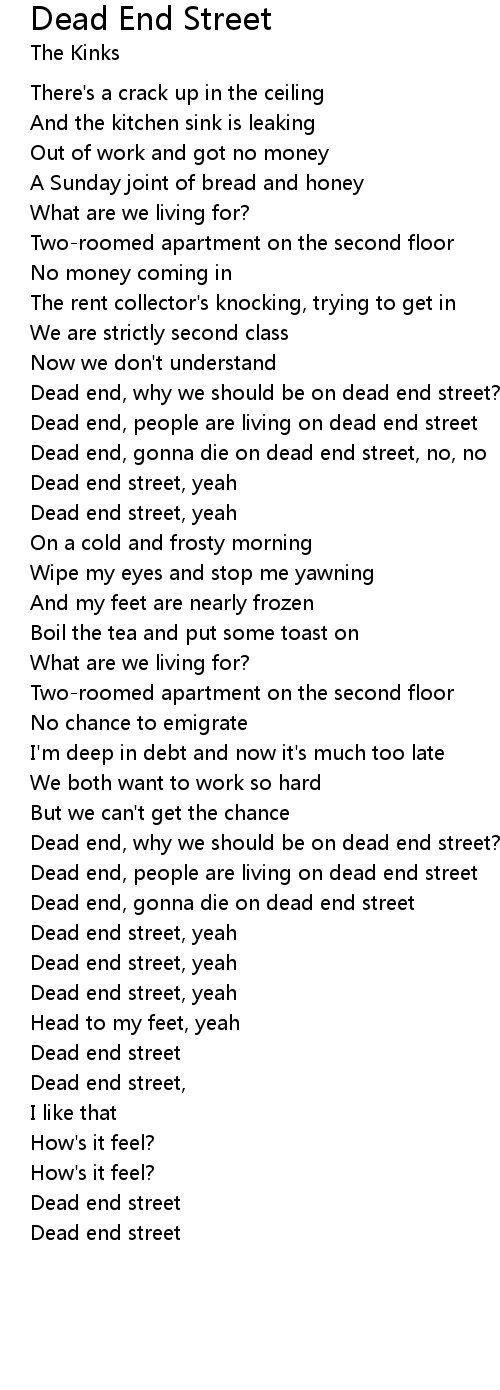 Dead end, gonna die on dead end street |