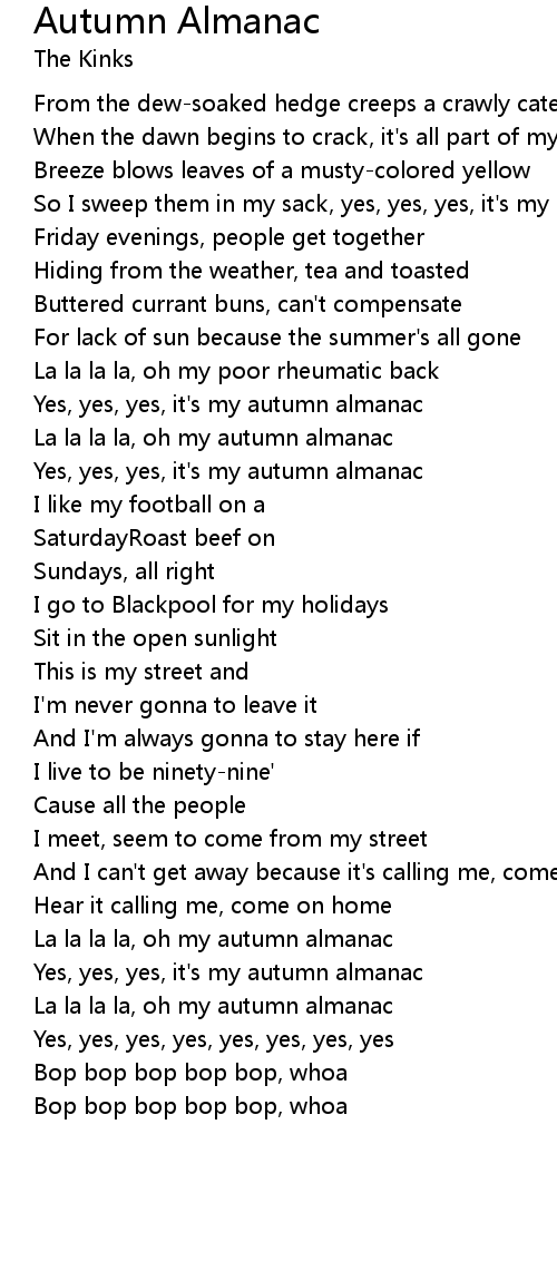 La la la la, oh my autumn almanac |
