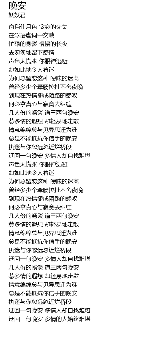 | [03:54.361] | 总是不能抵抗你信手的晚安 |