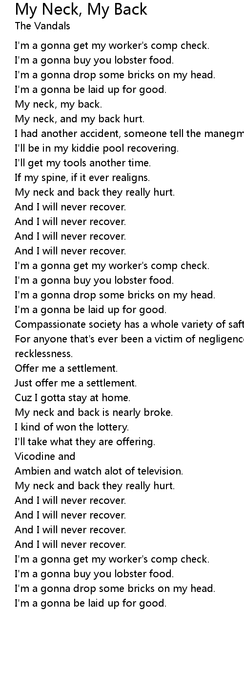 My neck, my back. |