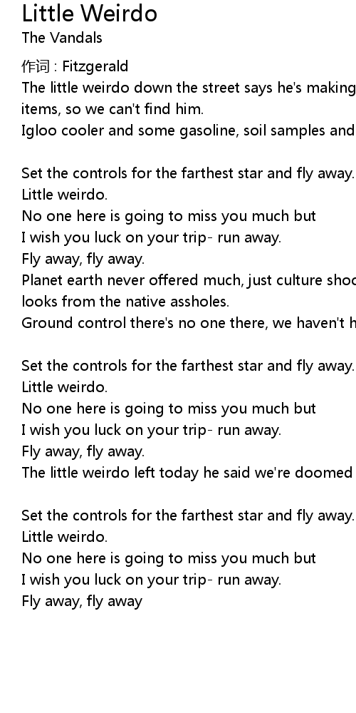 | The little weirdo left today he said we' re doomed but from his view it' s so beautiful. Chorus: | |