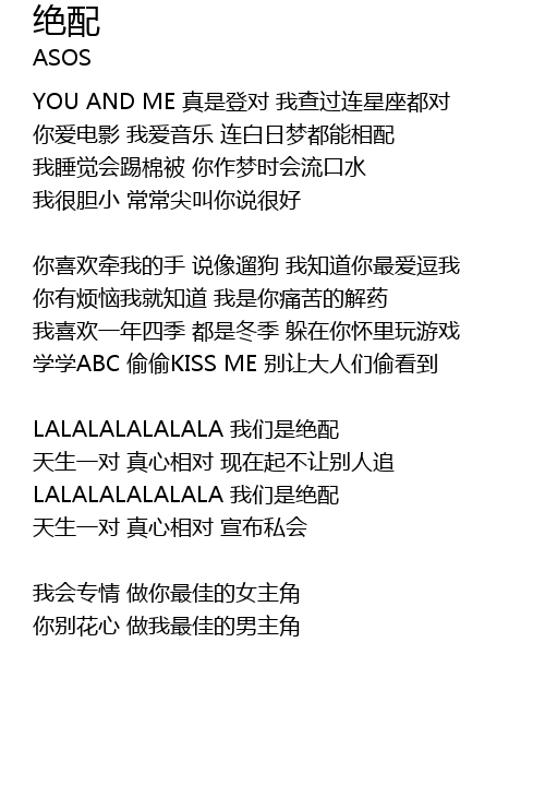 | 天生一对 真心相对 现在起不让别人追 | |