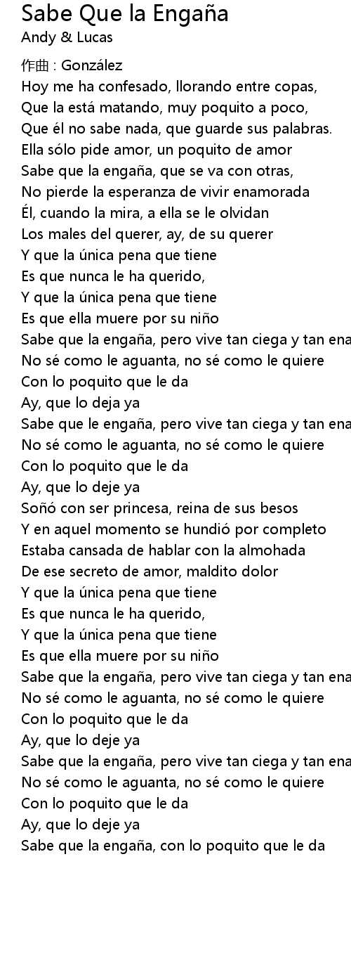 | 歌曲 | Sabe Que la Engaña |
