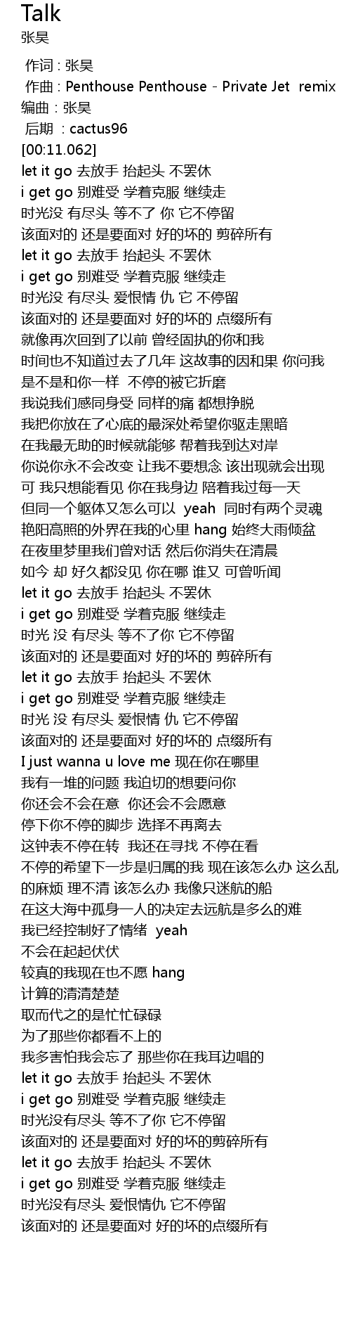 | [01:32.948] | let it go qu fang shou tai qi tou bu ba xiu |