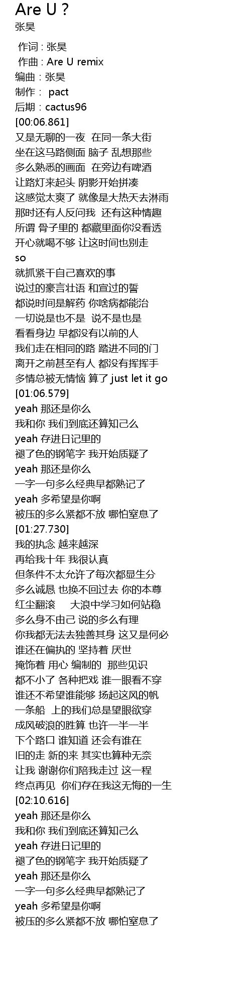 | [00:01.000] | zuò qǔ : Are U remix |