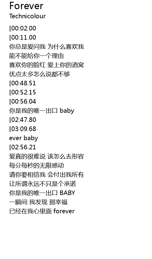 | [03:17.60][03:09.68][03:01.50][02:53.90][02:21.40][02:13.61][01:17.70][01:09.90] | forever ever baby |