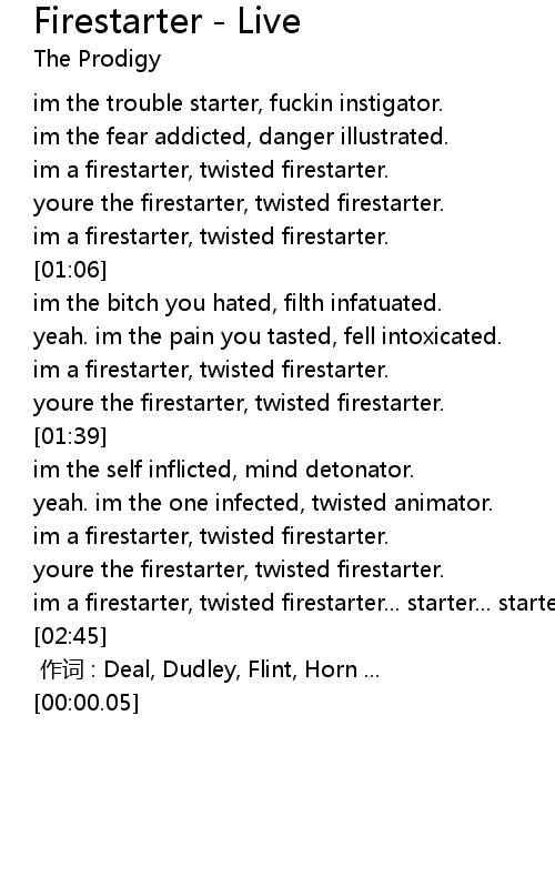 | [00:54] | youre the firestarter, twisted firestarter. |