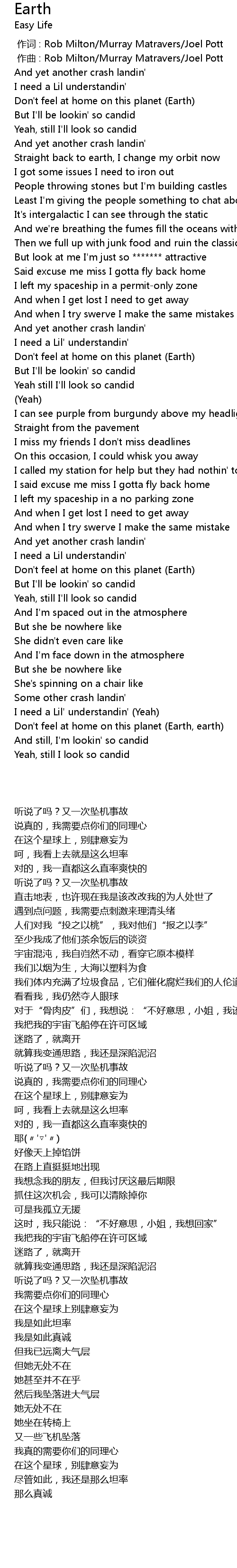 | [02:52.98] | Don't feel at home on this planet (Earth, earth) |