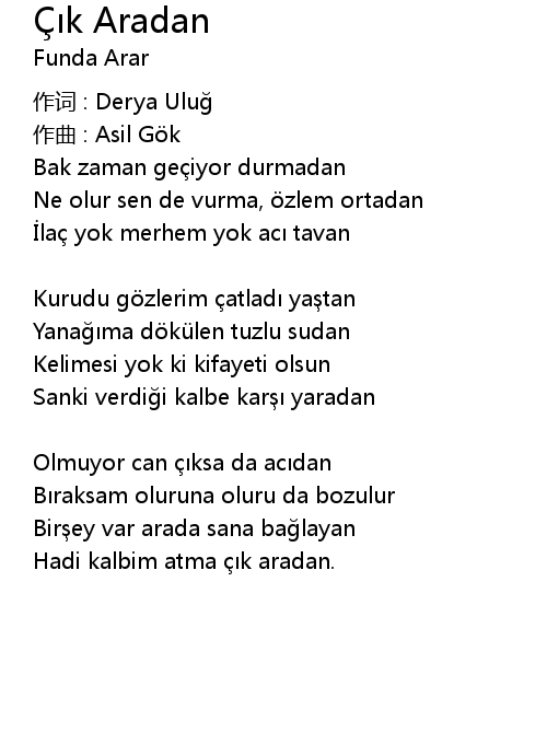 | 歌曲 | Çık Aradan |