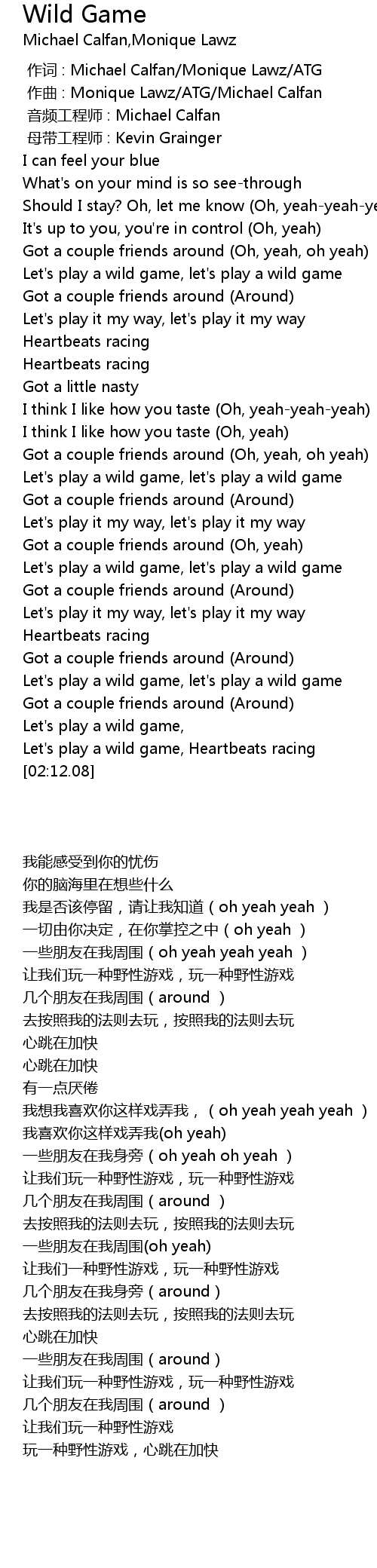 | [01:12.14] | 让我们玩一种野性游戏,玩一种野性游戏 |