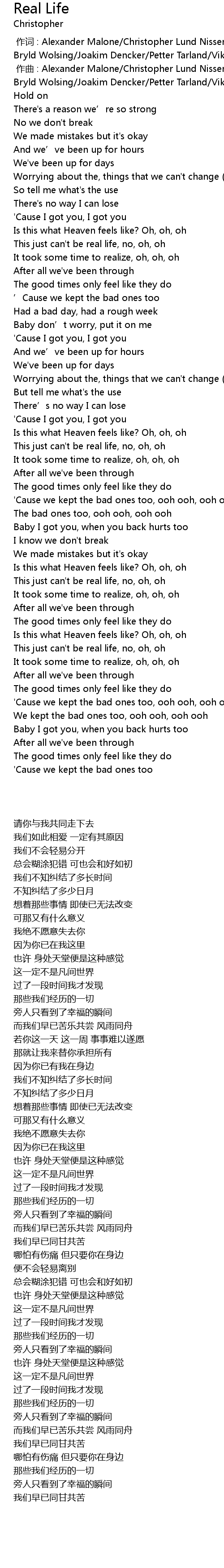 | 歌曲 | Real Life |