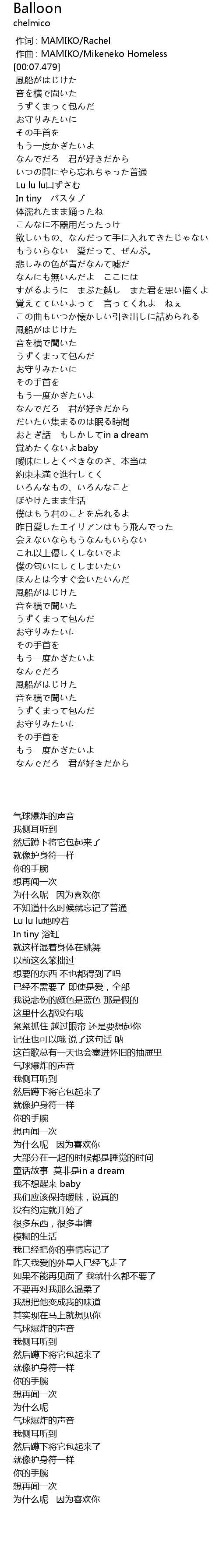 | [00:00.000] | 作词 : MAMIKO/Rachel |