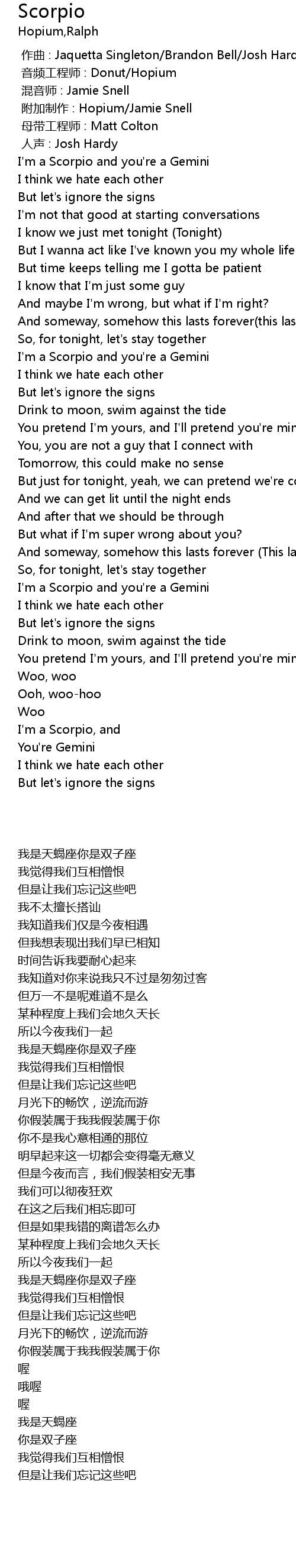 | [00:00.38] | I'm a Scorpio and you're a Gemini |