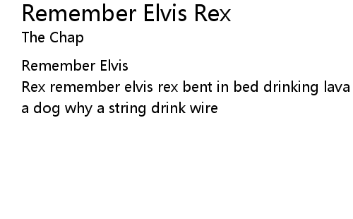Rex remember elvis rex bent in bed drinking lava mint why a dog why a string why a dog why a string drink wire