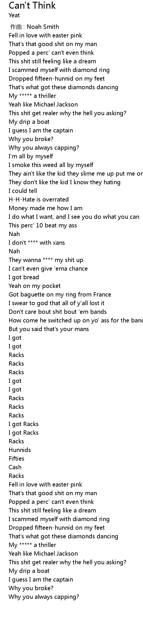| 歌曲 | Can't Think |