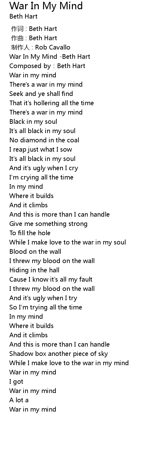 | [00:00.130] | zuò qǔ : Beth Hart |