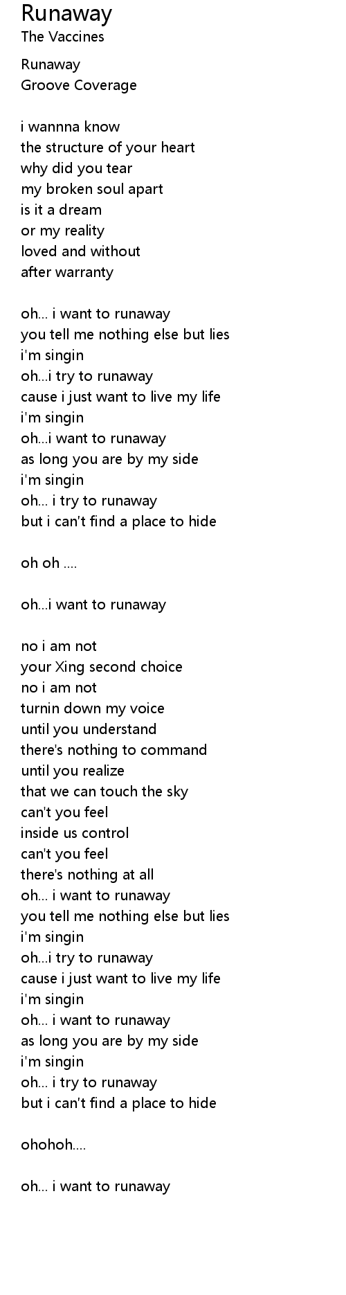| 歌曲 | Runaway |