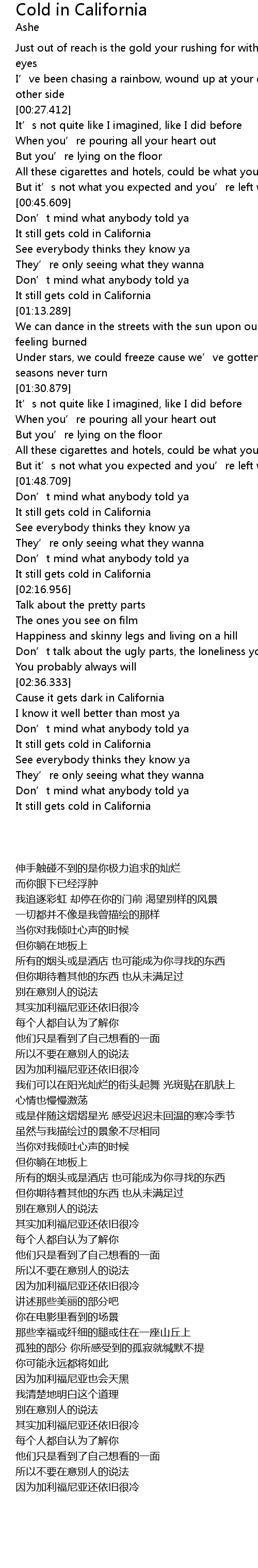 | [02:49.697] | 其实加利福尼亚还依旧很冷 |