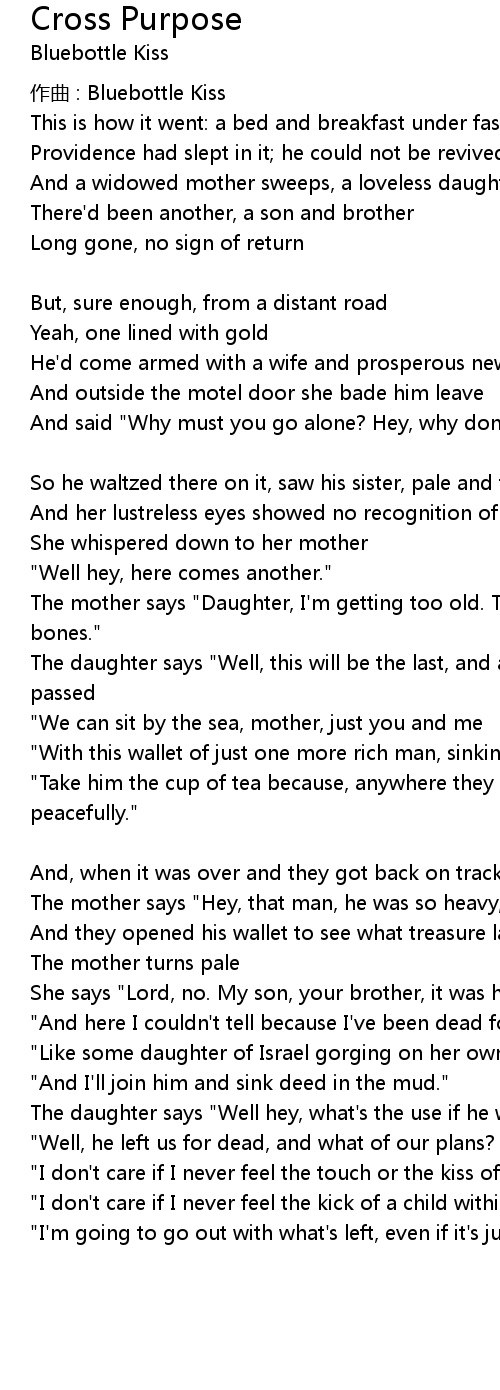 | The mother says " Daughter, I' m getting too old. This guilt is corroding my bones." | |