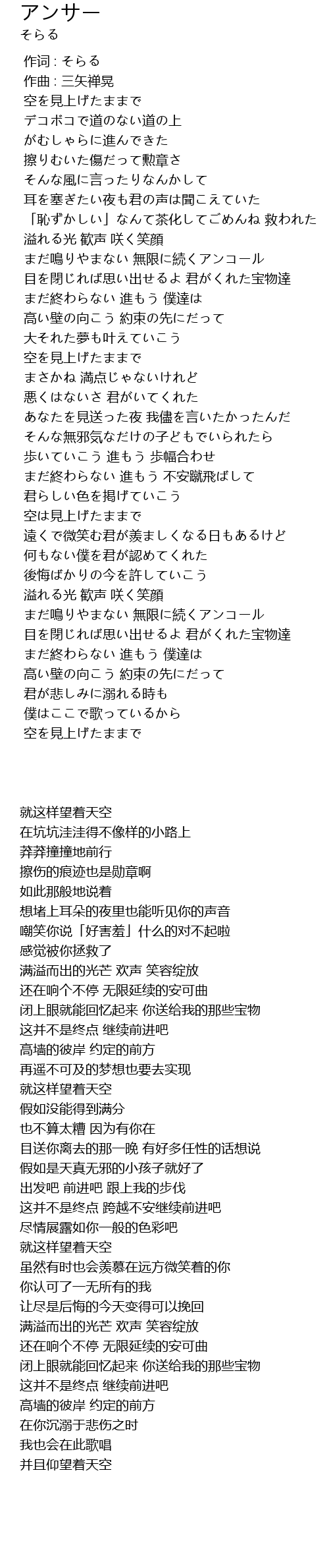 | [03:14.211] | まだ鳴りやまない 無限に続くアンコール |