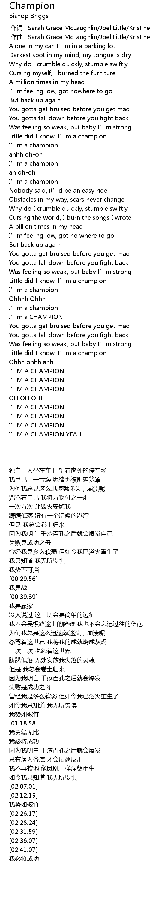 | [02:45.81] | I’M A CHAMPION YEAH |