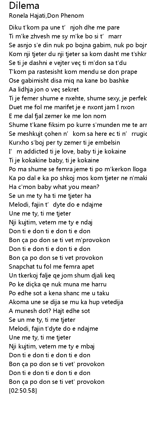 | [01:41.09] | Bon a po don se ti vet m' provokon |