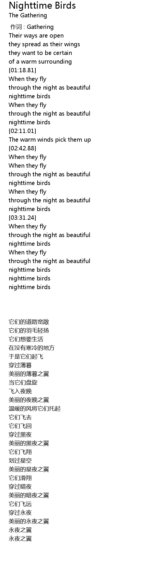 | [03:10.33] | 美丽的黑夜之翼 |