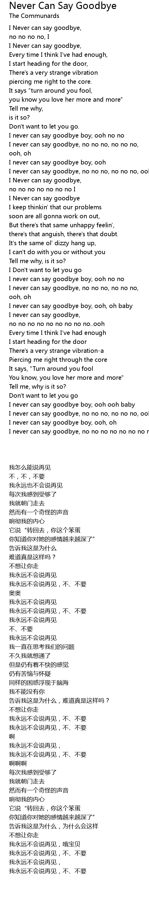 Never Can Say Goodbye 歌词