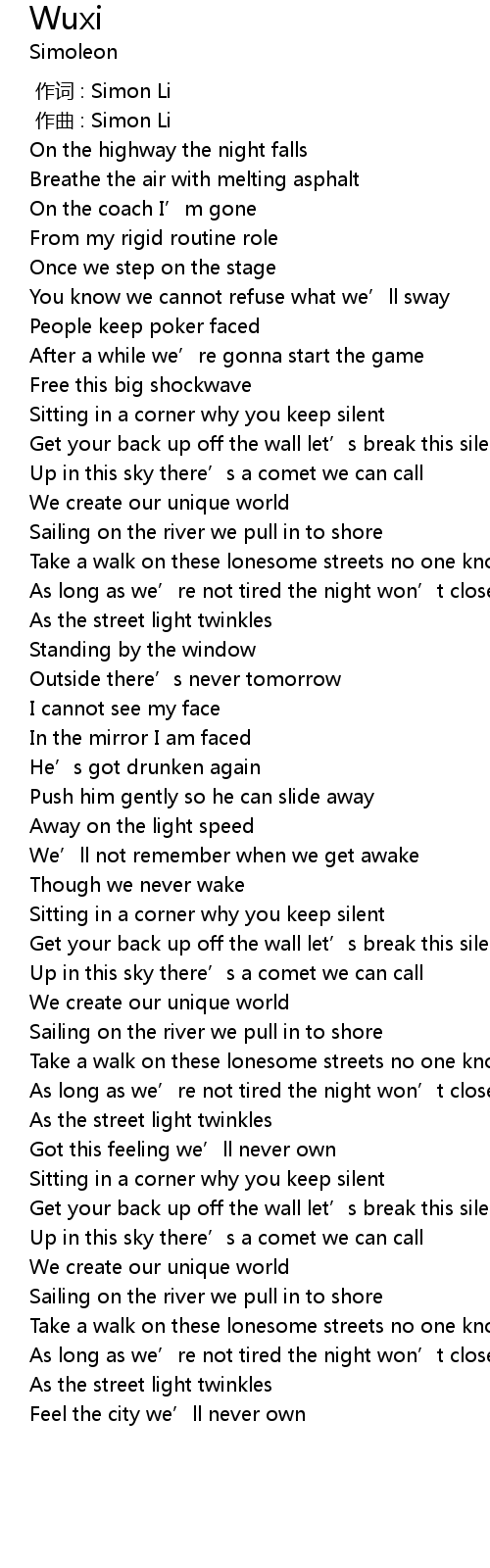 | [00:00.00] | 作词 : Simon Li |
