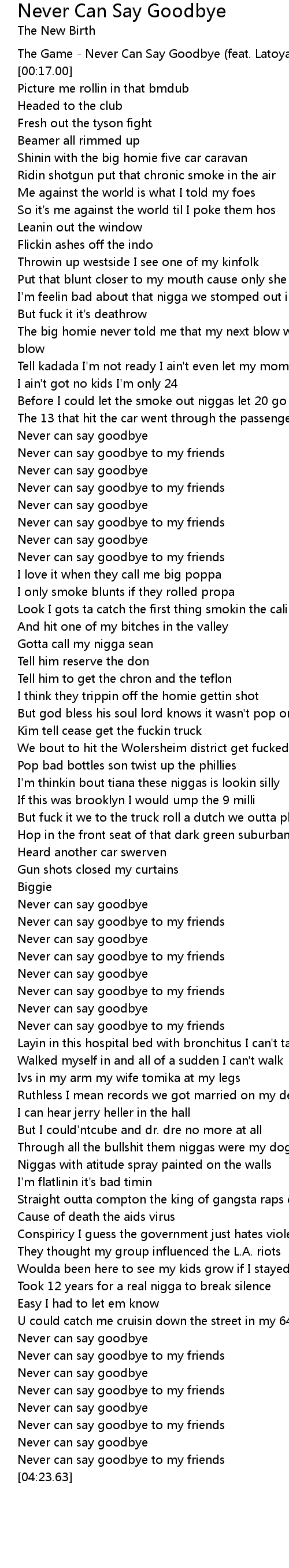 The Game - Never Can Say Goodbye (feat. Latoya Williams) |