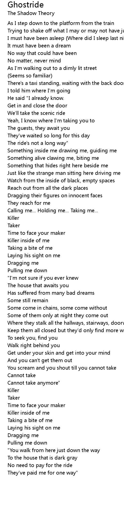 Calling me... Holding me... Taking me... |