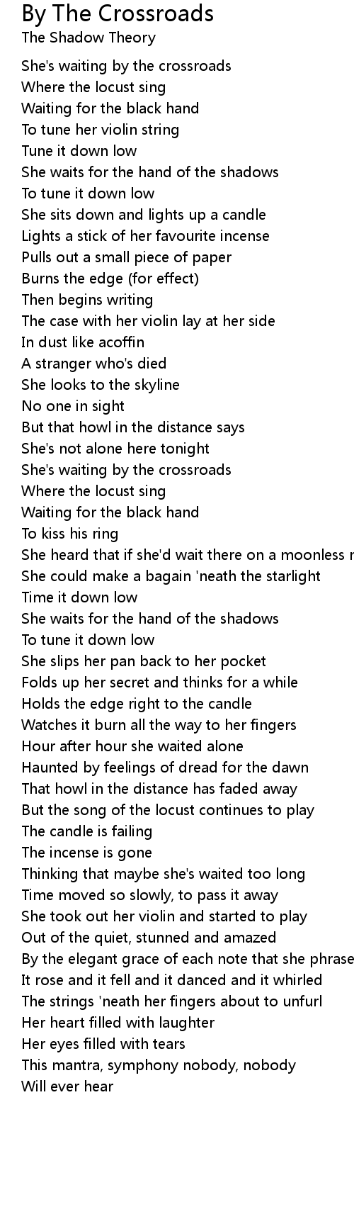 She's waiting by the crossroads |