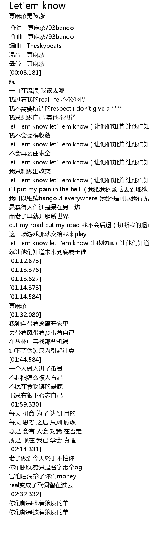 | [01:07.876] | let‘em know let‘em know 让我收尾(让他们知道) |