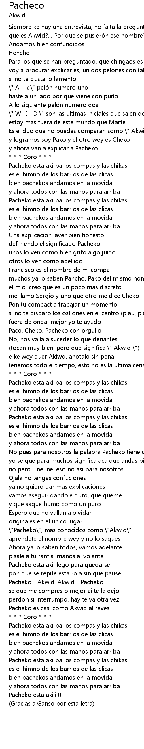 | Pacheko - Akwid, Akwid - Pacheko | |