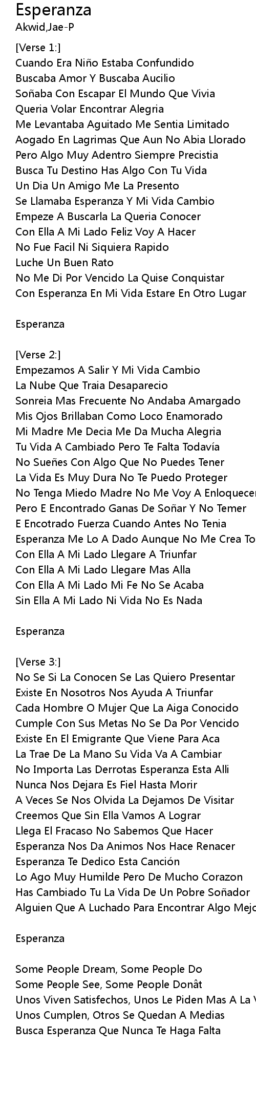 | Esperanza Me Lo A Dado Aunque No Me Crea Todavi a | |