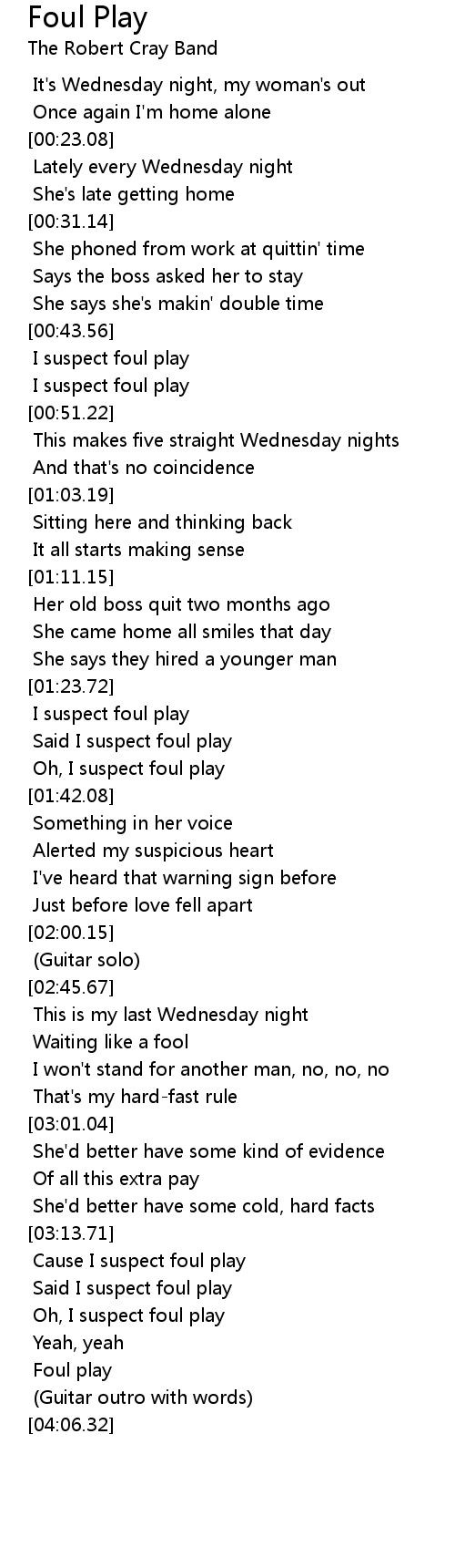 Cause I suspect foul play |