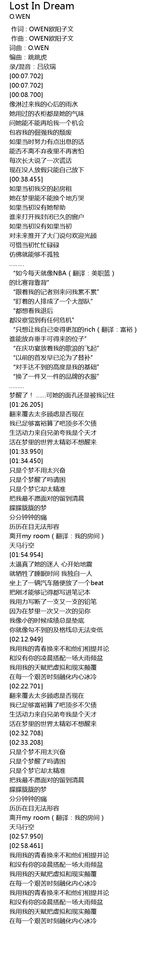 | [01:38.956] | 只是个梦醒了吗请困 |