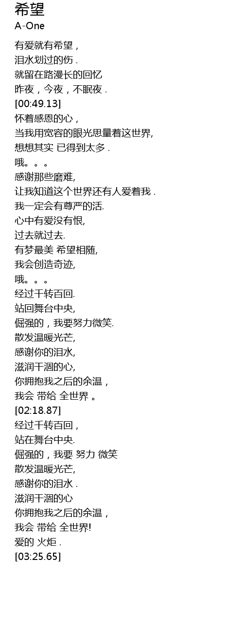 | [01:22.77] | 让我知道这个世界还有人爱着我 . |