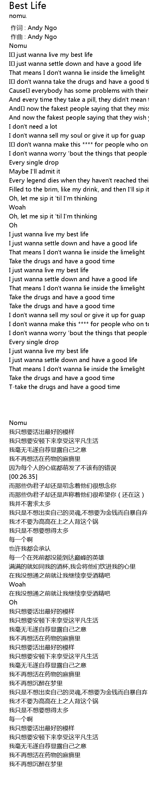| [00:18.76] | I don't wanna take the drugs and have a good time |