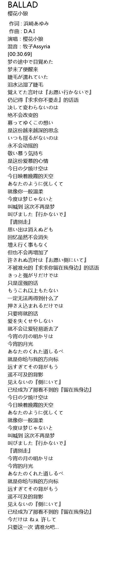 | [00:00.00] | 作词 : 浜崎あゆみ |