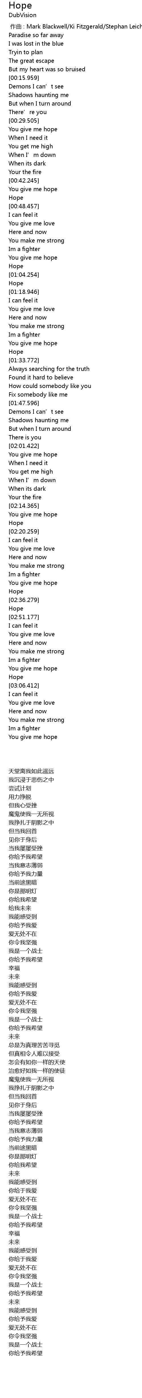 | [02:17.174] | Hope |