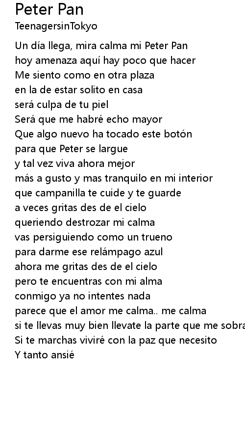 | [00:11.61] | Un dí a llega, mira calma mi Peter Pan |